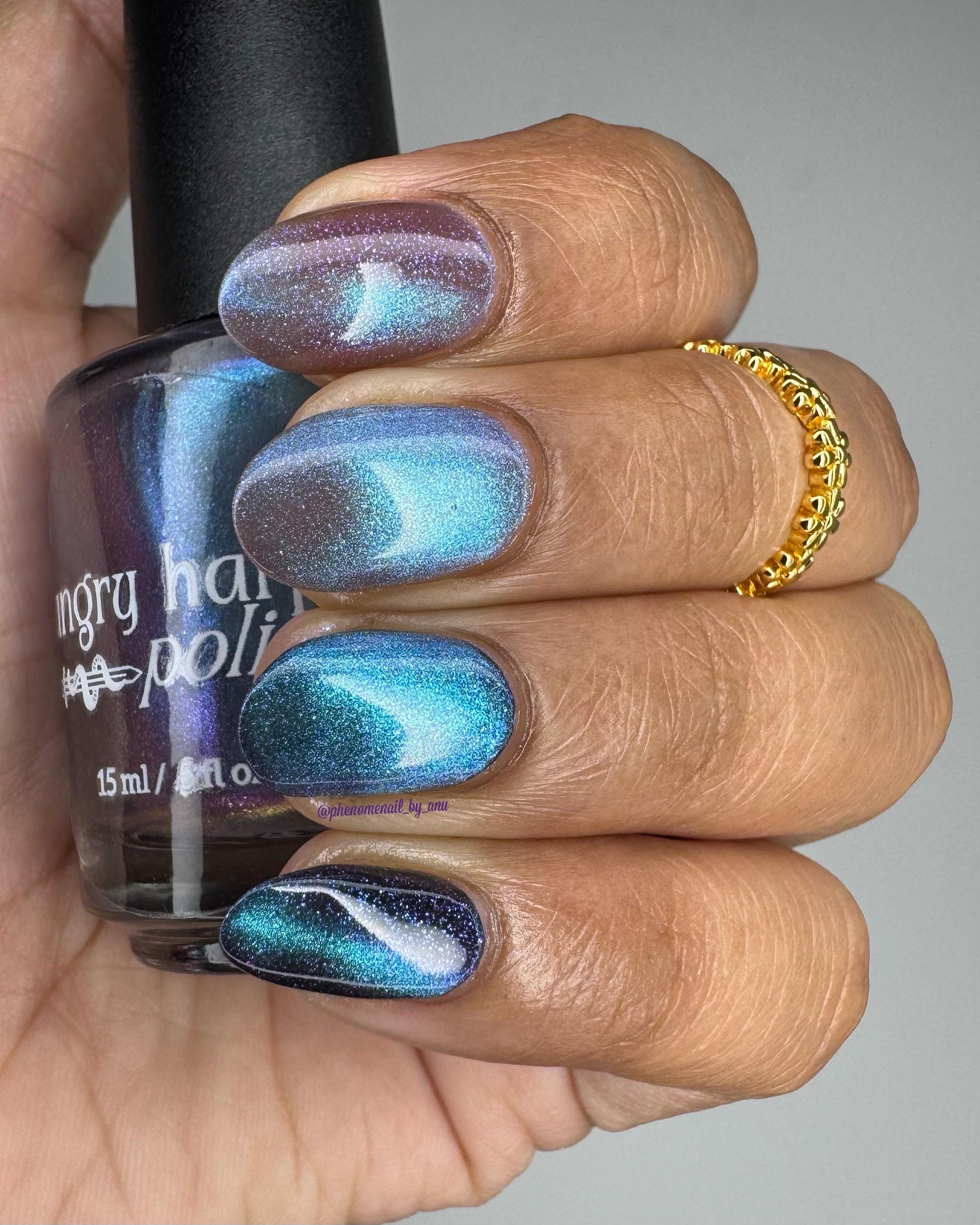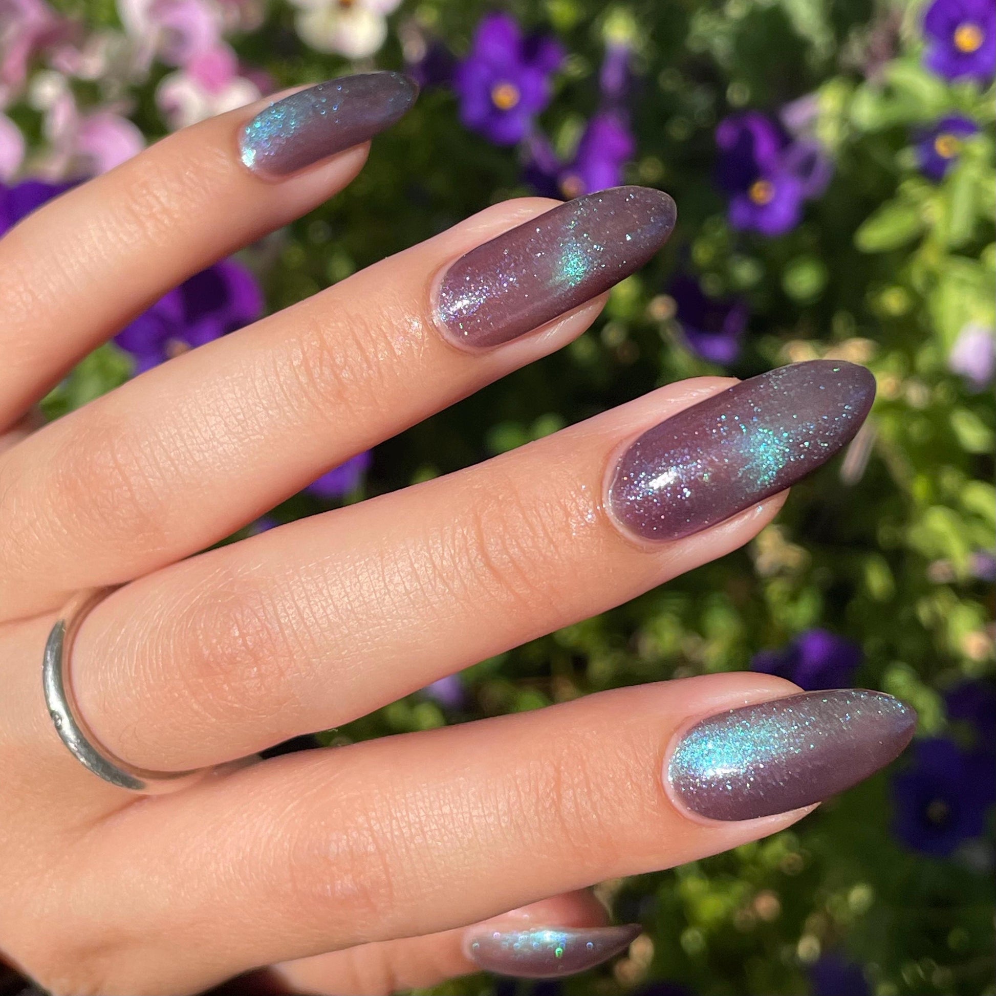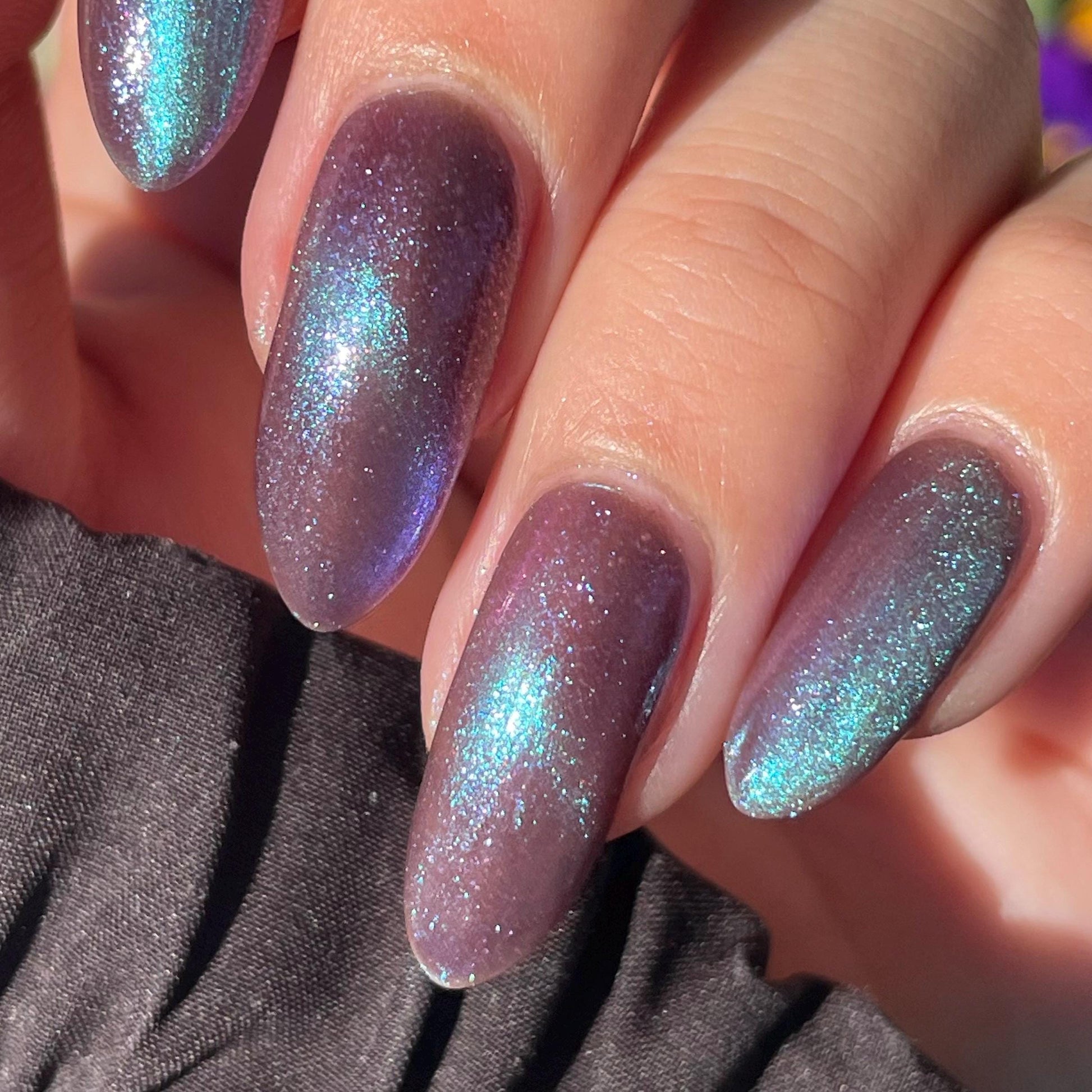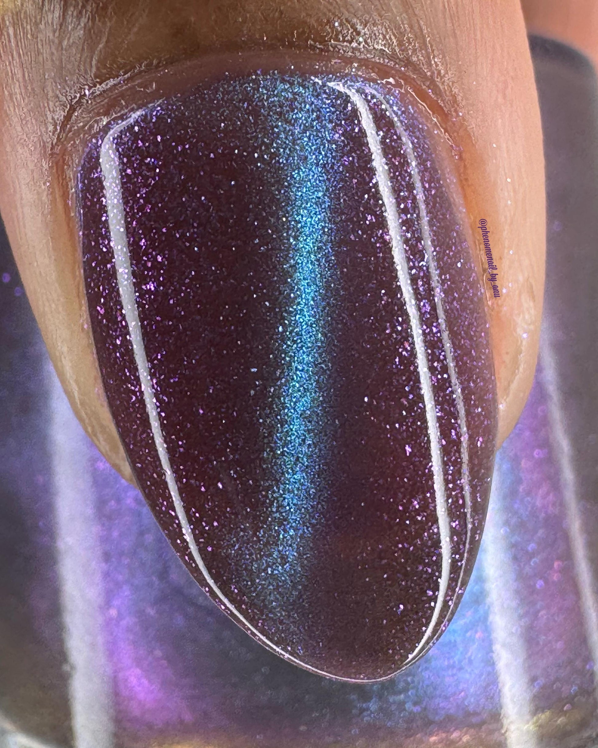 Hecate’s Hounds is a deep purple polish with teal magnetic particles and purple shimmer. *Does NOT include magnet*
