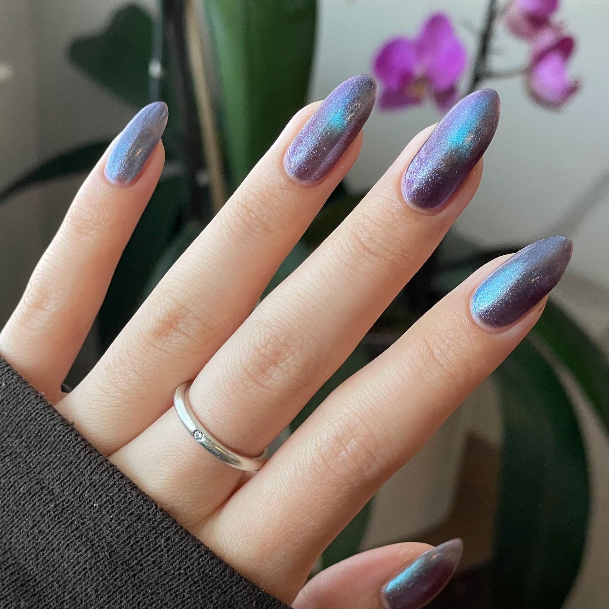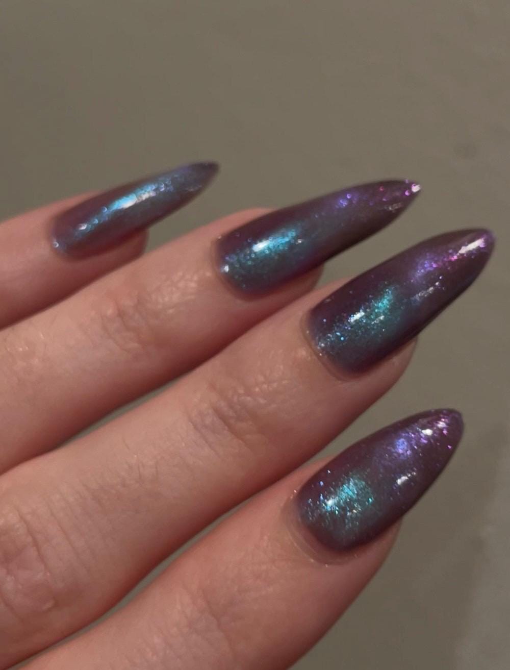 - This one is a bit more sheer and I think looks best in 3 coats. To change the look, try layering over a black, purple or blue base coat. Or magnetizing in different ways - velvet looks really neat! For longevity and shine, layer under a quick drying top coat (remember to magnetize your top coat, too). *all swatch photos show polish layered under a top coat*